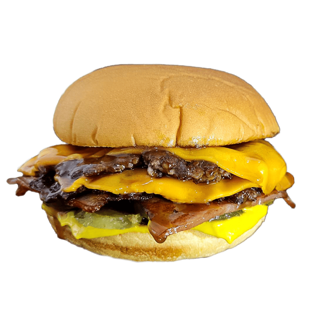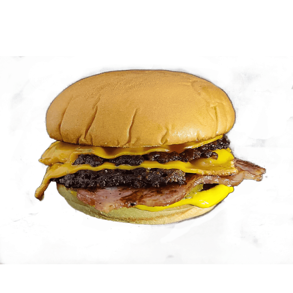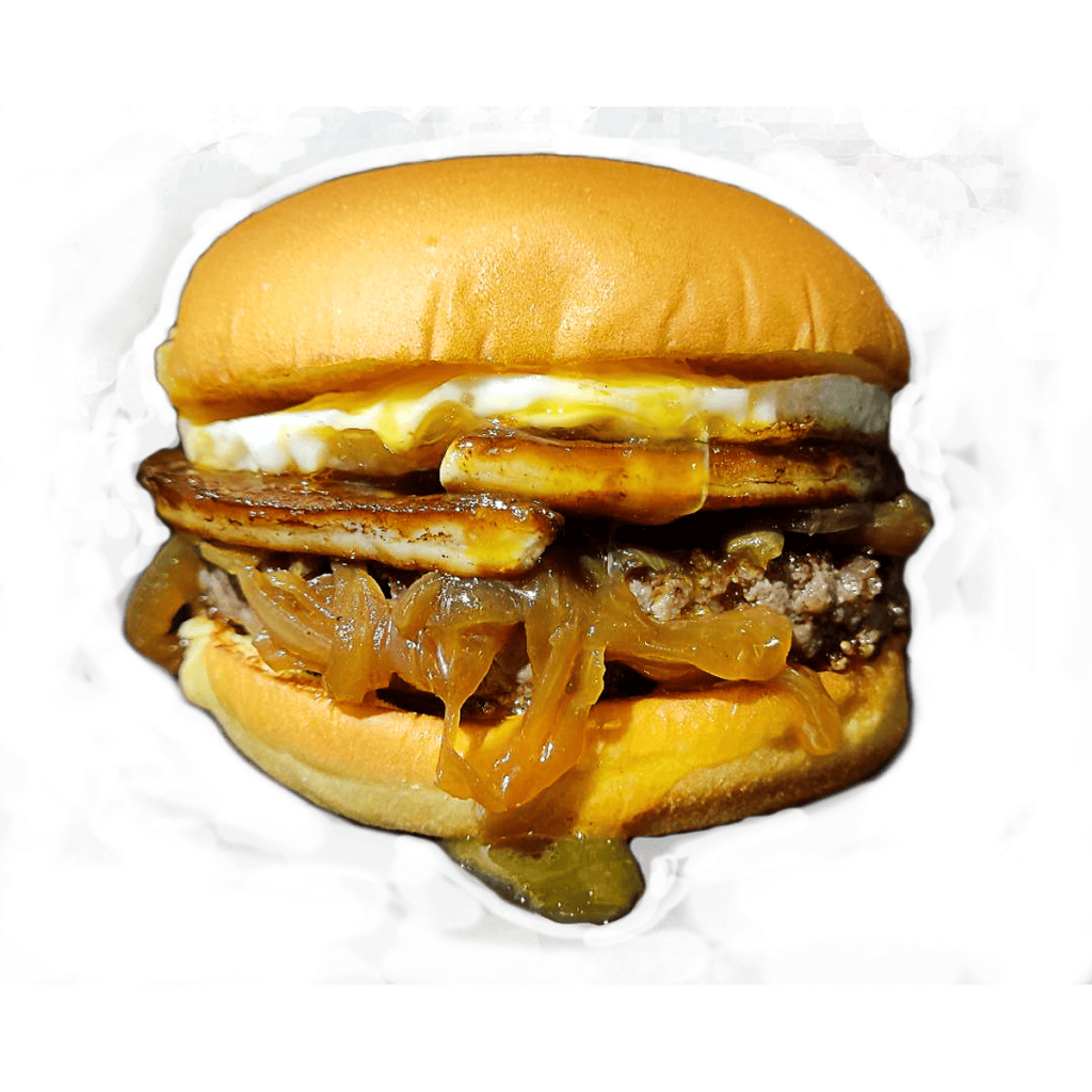 150 gramos de hamburguesa de vaca Simmental de montaña, madurada por 30 días, huevo a la plancha, escalopa de Foie Gras, cebolla caramelizada de Fuentes (en temporada), servido en nuestro exclusivo pan americano high potato. (Elegir el punto de la carne)